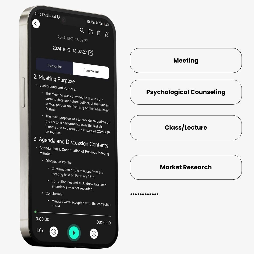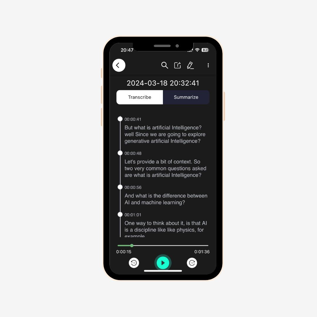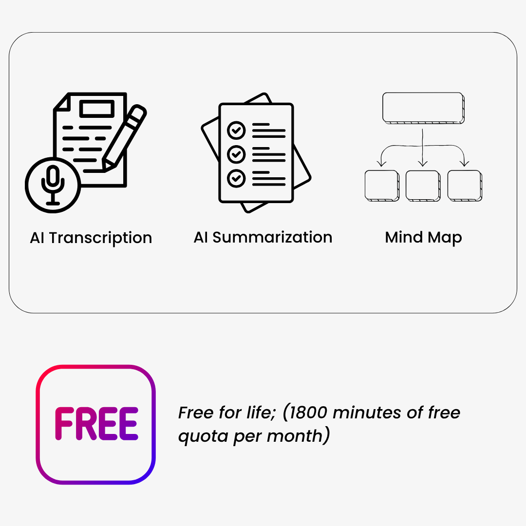 Lebenslanger kostenloser KI-Service beinhaltet: Transkription und Zusammenfassung