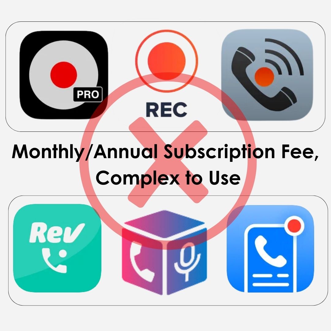 Im Gegensatz zu herkömmlichen Anrufaufzeichnungs-Apps wie Call Recorder Cube oder TapeACall, für die wiederkehrende jährliche oder monatliche Gebühren anfallen, bietet FoCase eine lebenslange kostenlose Anrufaufzeichnung ohne Einschränkungen oder versteckte Kosten.
