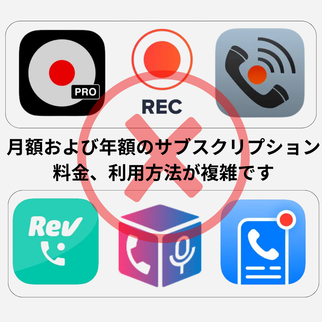 Call Recorder CubeやTapeACallのような従来の通話録音アプリとは異なり、これらは年間または月額の定期料金が発生しますが、FoCaseは制限や隠れたコストなしで、永久無料の通話録音を提供します。