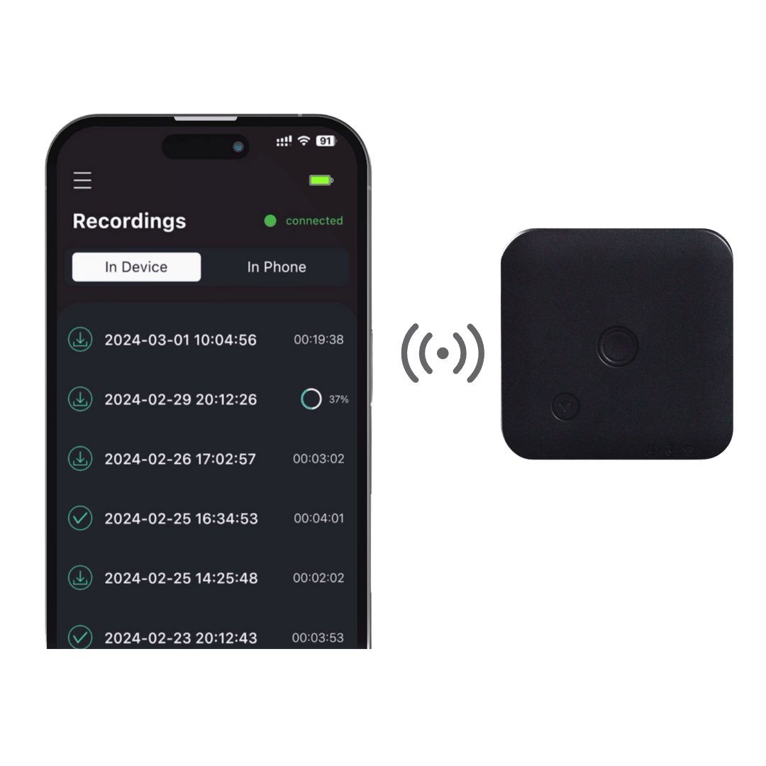 最先端の振動伝導技術を搭載した本録音機は、イヤーピースの振動を検知し、それを正確な電気信号に変換することで、双方の音声を高音質で録音します。